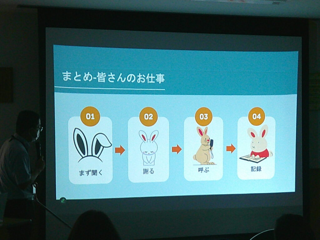 そのためには、①まず聞くこと②そして謝る③一人で対応せず誰かを呼ぶ④記録する