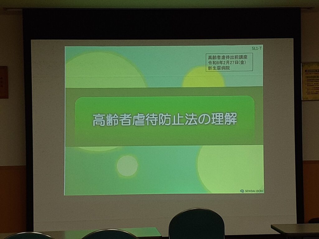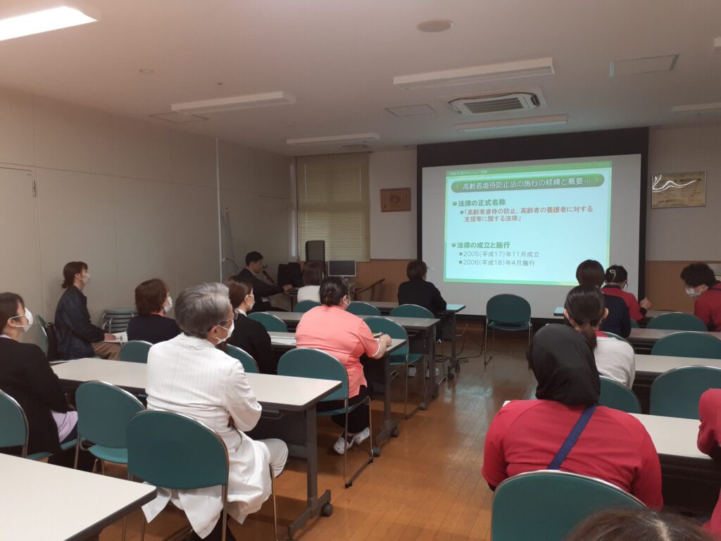研修では、高齢者虐待の定義や基本的な考え方について学ぶとともに、実際の事例も紹介していただき、日頃のケアを振り返る貴重な機会となりました。